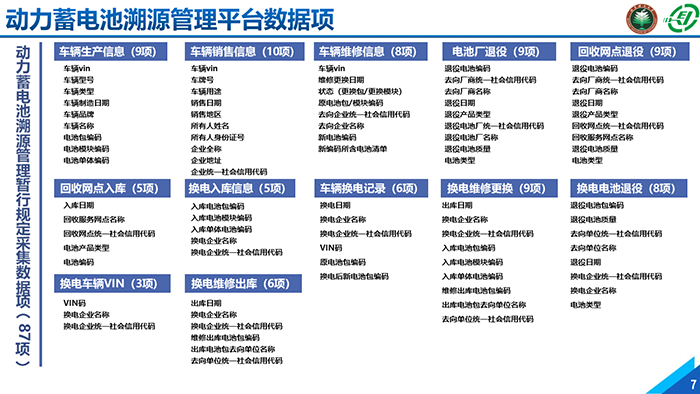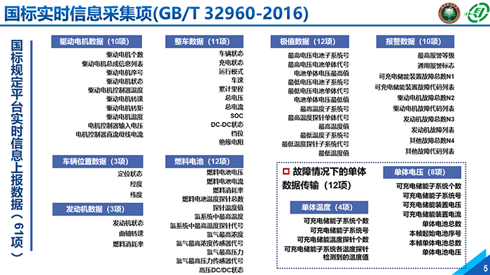 按照国标GB/T32960—2016,国家平台数据项是73项;溯源平台数据项是87项。两大平台相叠加共计160项数据项,形成了新能源汽车较为完整的数据链。