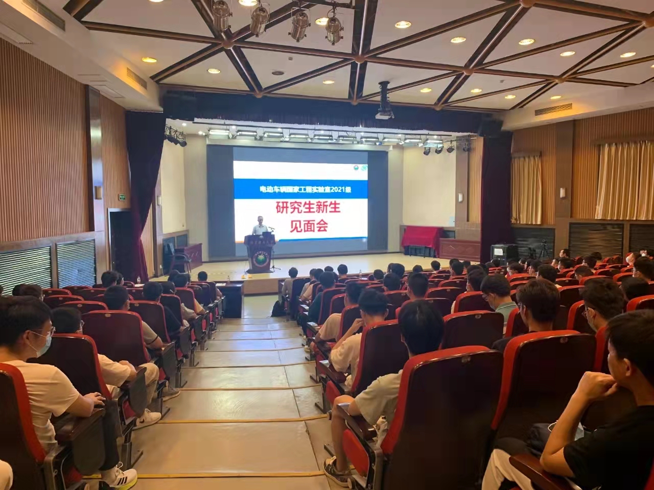 新学期伊始,为让实验室新同学进一步了解实验室发展历史、前沿科研方向和未来规划,并更快的融入到实验室这个温暖的大家庭,9月3日下午,电动车辆国家工程实验室2021级研究生新生见面会在7号楼报告厅举行。实验室创始人孙逢春院士、首席科学家张承宁、实验室主任王震坡、书记王志福、副主任王文伟、陈潇凯,以及实验室老师代表及研究生新生参加了本次会议。会议由陈潇凯副主任主持。