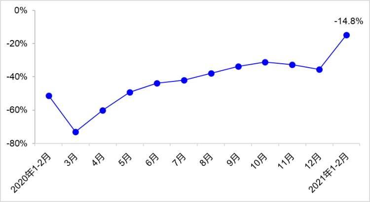 1—2月,完成营业性客运量12.4亿人,比2020年同期、2019年同期分别下降14.8%和58.6%,其中公路营业性客运量比2020年同期下降19.2%,水路客运量比2020年同期增长20.7%。