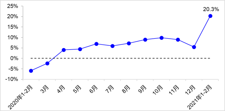 1—2月,交通固定资产投资完成3032亿元,比2020年同期增长71.7%,比2019年同期增长11.6%。公路水路完成投资2379亿元,同比增长93.9%,比2019年同期增长16.6%。分方式看,公路完成投资2197亿元,比2020年同期增长94.9%,内河、沿海分别完成投资75亿元和98亿元,比2020年同期分别增长105.8%和101.8%。