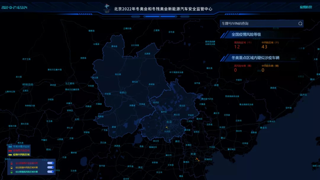 在国家工业和信息化部、科学技术部重点专项支持下,电动车辆国家工程实验室基于新能源汽车国家监测与管理平台,建设了冬奥新能源汽车安全防控平台(以下简称冬奥防控平台),可实现冬奥新能源车辆“人-车-路”信息融合与协同管控,为冬奥期间车辆安全监管与疫情防控协同增效提供有力支撑。