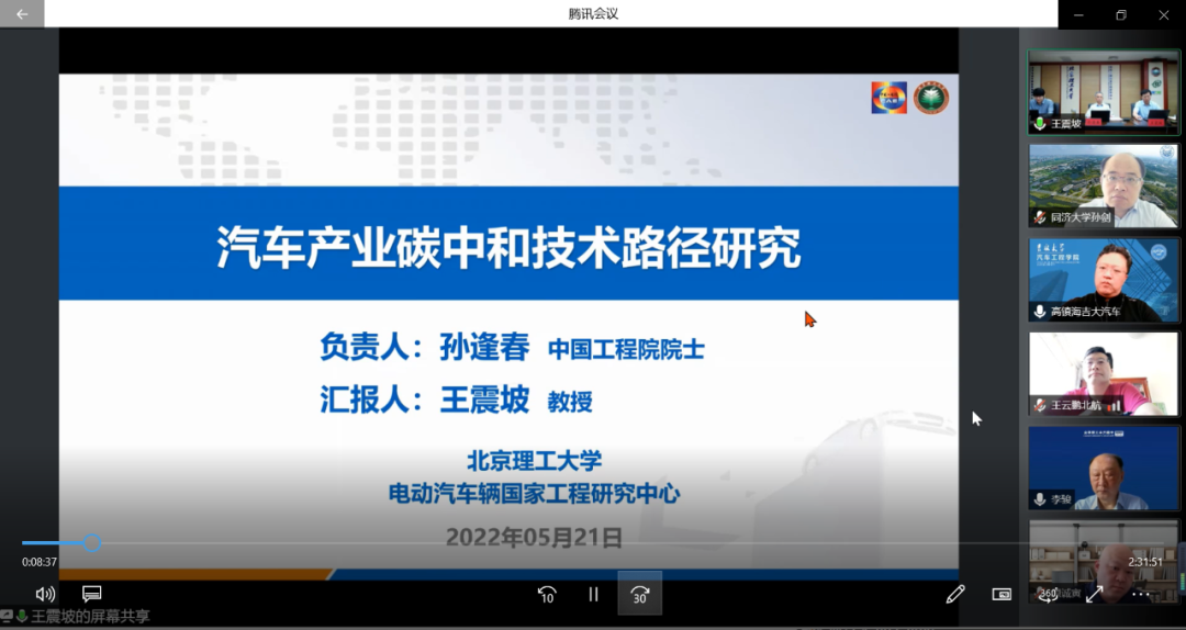 中国工程院高端智库专项“汽车产业碳中和技术路径研究”项目验收会顺利召开