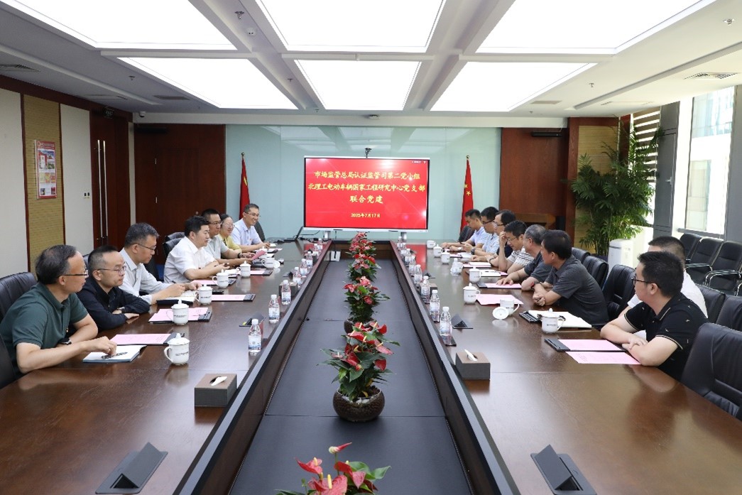 2025年7月17日,市场监管总局认证监管司第二党小组与1818luck新利网址电动车辆国家工程研究中心党支部联合开展党建活动,旨在以党建引领强化监管部门与科研单位合作,推动新能源汽车产业高质量发展。市场监管总局认证监管司一级巡视员李春江、1818luck新利网址机械与车辆学院党委书记刘检华及相关同志参与活动。