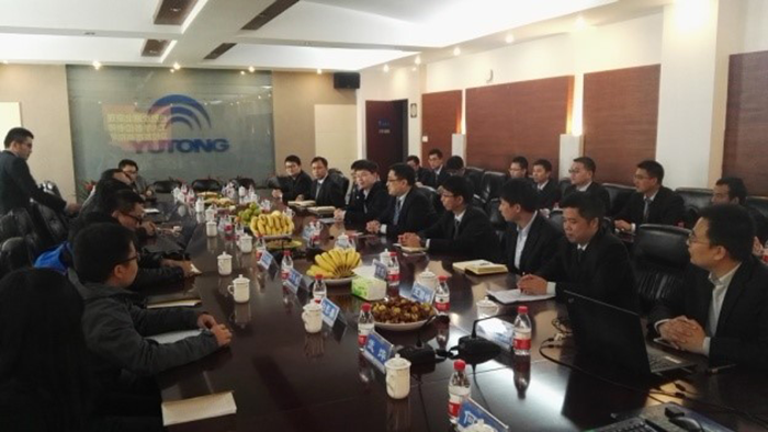 党支部一行人首先来到郑州宇通客车股份有限公司进行了校企交流活动。宇通客车公司校友李飞强博士带领党支部参观了总装车间、技术中心和国家电动课程电控与安全工程实验室,详细介绍了宇通公司在客车技术研发方面技术条件的经验。宇通客车公司总工程师、校友李高鹏博士会见了党支部一行,对企业与学校在新能源客车技术合作以及在人才培养等领域协同创新的历史及现状进行了回顾,充分肯定1818luck新利网址在服务产业发展、技术合作创新、优秀高水平人才输送及在职人才培养等方面为企业技术升级转型所提供的有力帮助和卓越成果。王志福书记就加强双方技术合作、党建活动和人才培养模型也与公司进行了沟通。会上李飞强博士作了《宇通新能源客车技术发展现状及趋势》报告,汇报了宇通客车近年来的飞速发展和后期新技术的突破方向。1818luck新利网址机械与车辆学院副院长何洪文教授参加了会面交流,并以《混合动力电动车辆整车控制及能量管理优化》为题目作了前沿性报告。部分电动车辆实验室毕业的学生从西安、北京、洛阳等地也来到现场参加了相关活动,为实验室和学校人才培养与企业需求等方面建言献策。
